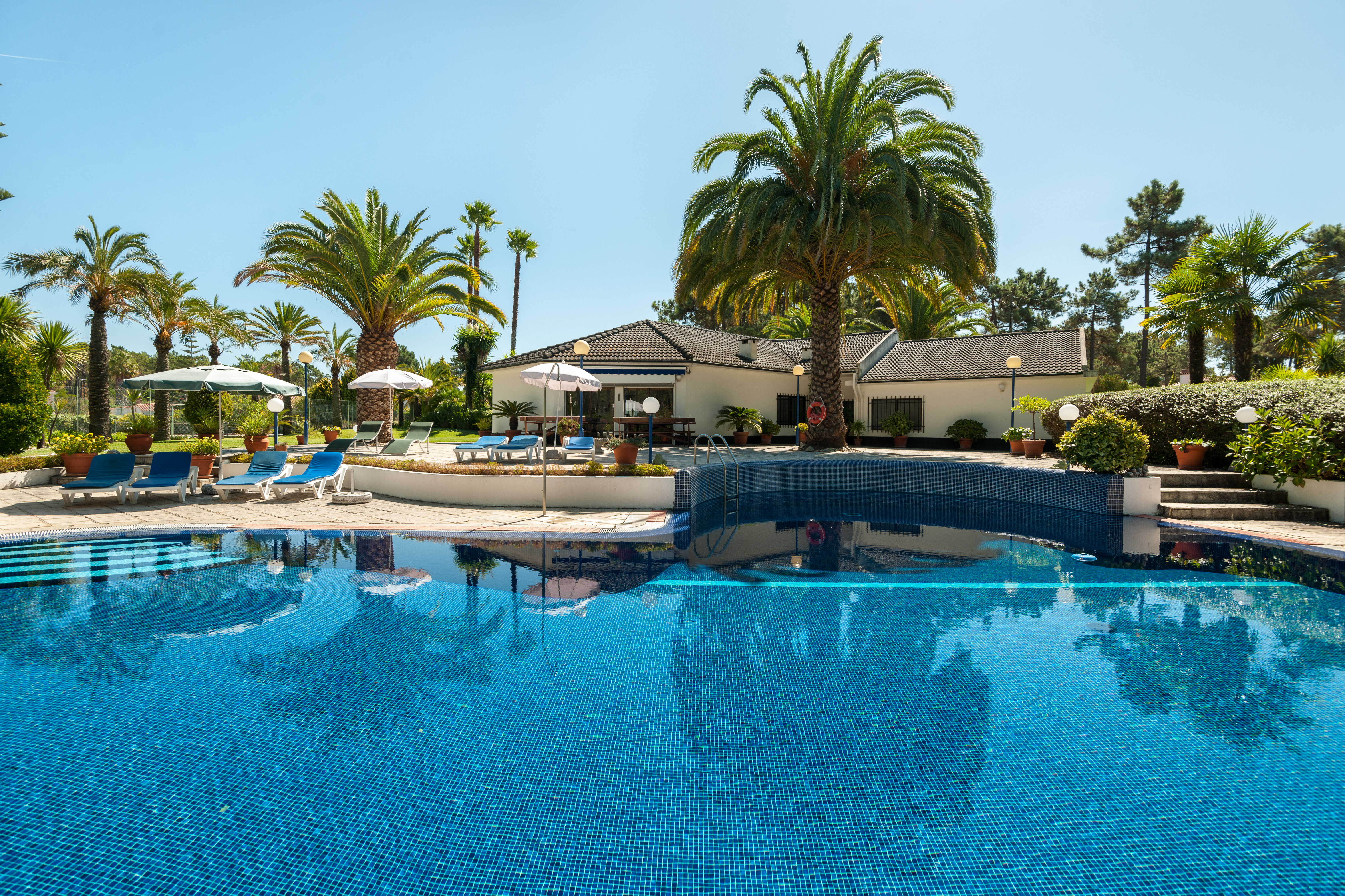 Villa with 4000m^2 of land, most of them garden, exotic style, big swimming pool and tennis court. Is located in a natural place, 20km from the center of Lisbon and just 2,5 km from the beach and Aroeira Golf.