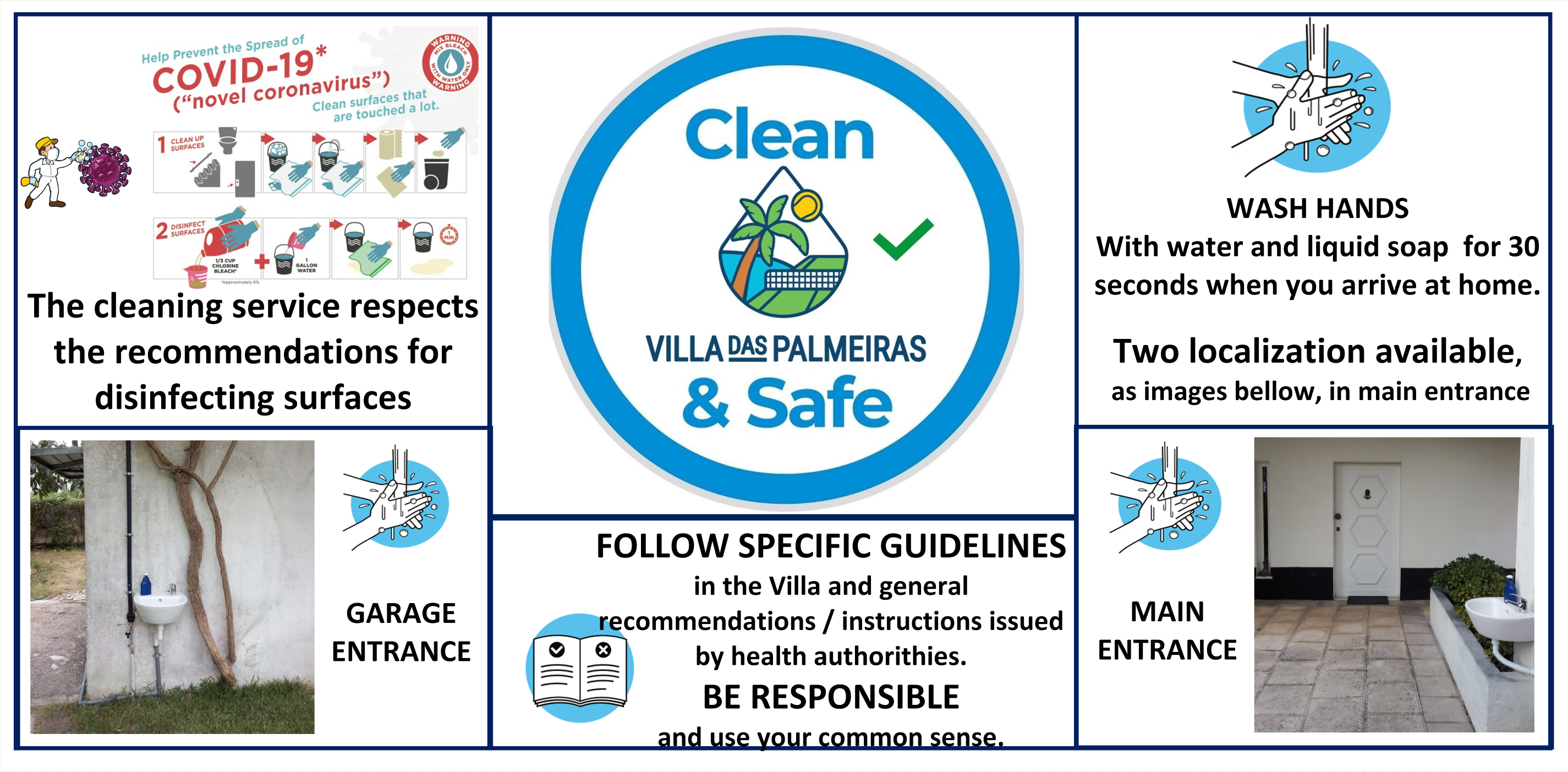 Main house: One storey villa, with comfortable living room and dining room and a well-equipped kitchen. Large windows around the living room allow for natural exterior light to brighten the interior of the residence. 1 suite with a double bed, 2 double bed bedrooms, 1 twin bed bedroom, 2 bathrooms with tub and shower and one bathroom with shower. Fully equipped kitchen, tv lcd, satelite TV, Wi-Fi internet.
